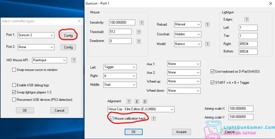 Make sure that the Mouse Calibration hack box is checked before starting so that you can calibrate the guns aim.