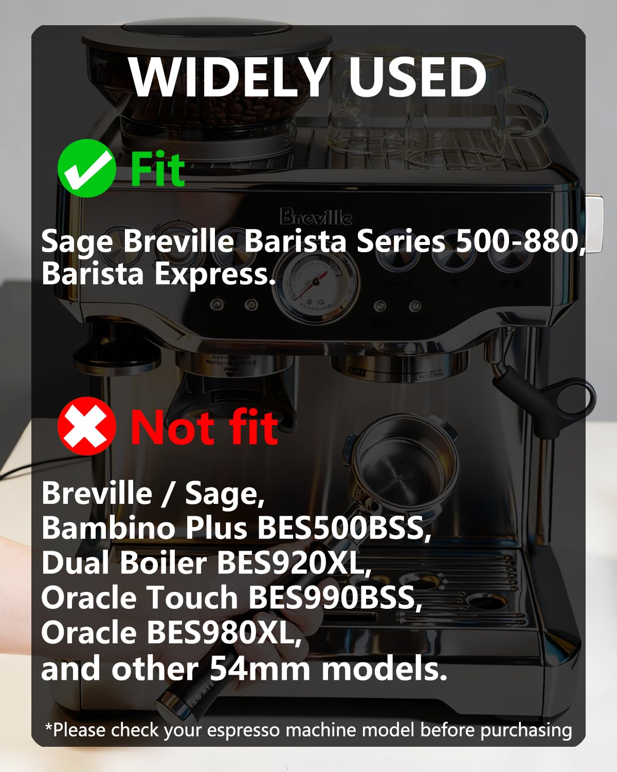 - Compatibility is narrow: it only works with 54mm 3-ear Sage/Breville Barista models, so it is not a universal accessory.
