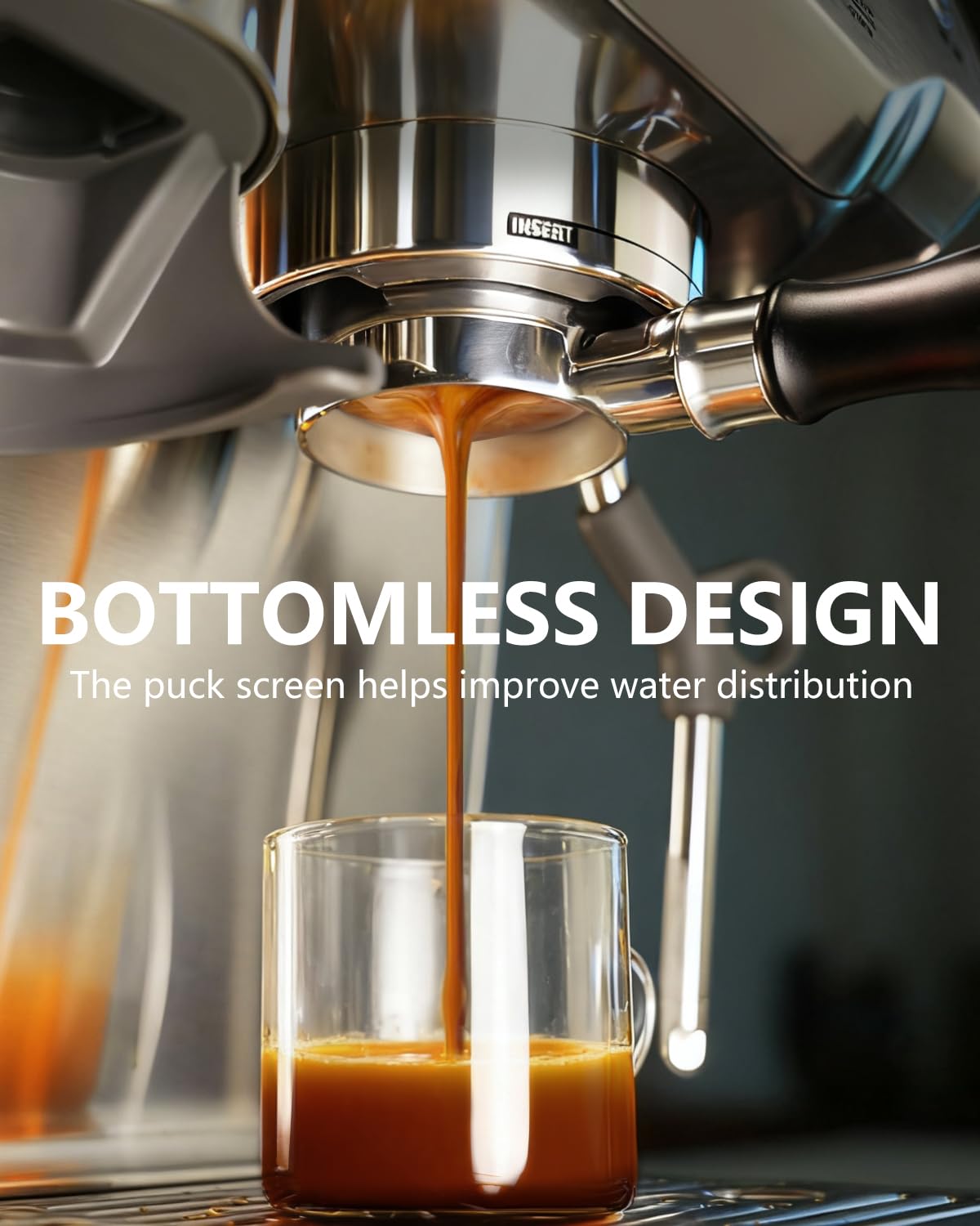Buyers most often seem to value the extraction feedback from the bottomless base, especially for spotting uneven flow and improving technique. The included basket and puck screen are also likely to be praised because they make the set feel more useful straight out of the box.