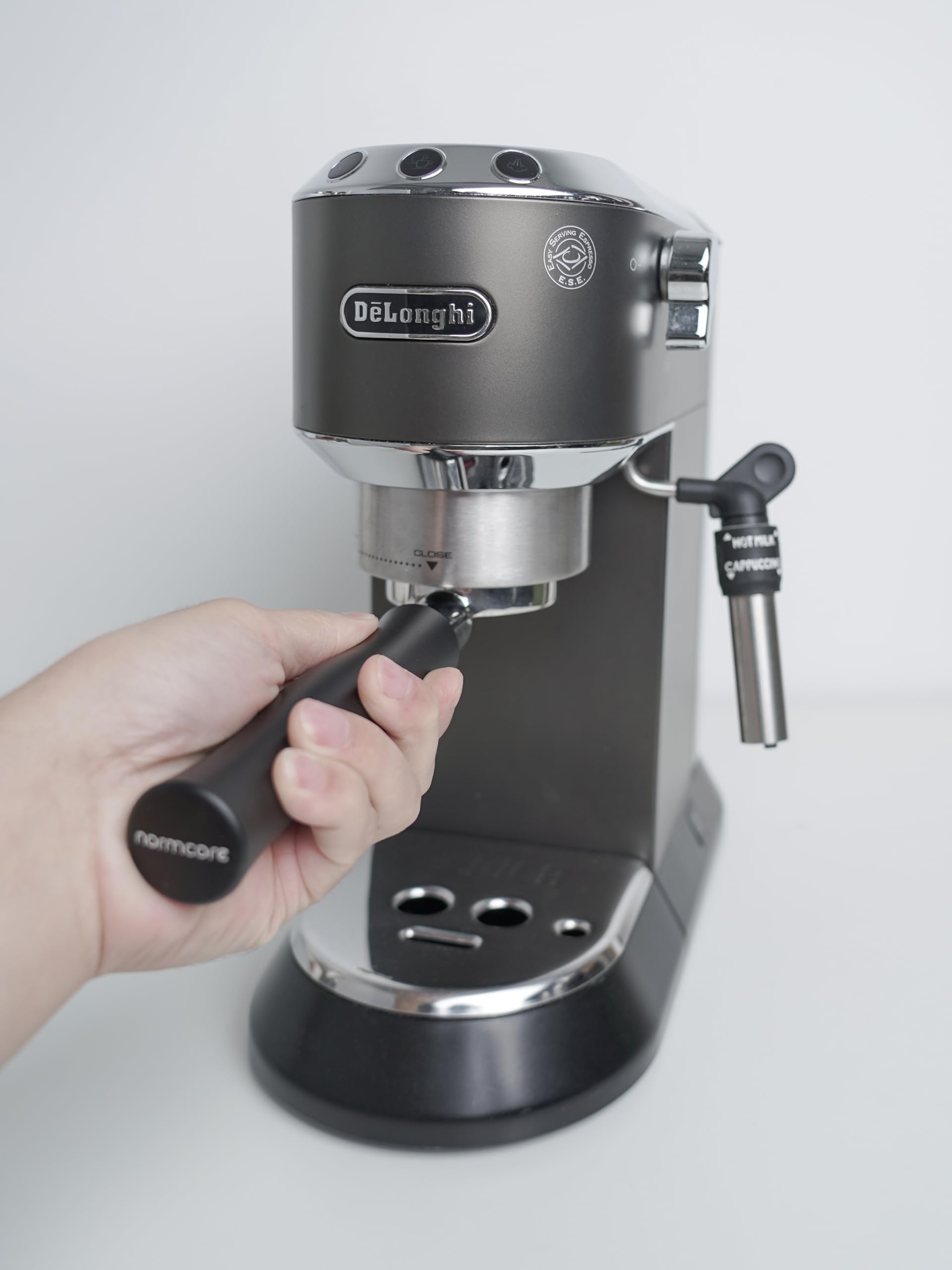 First thing’s first: this is not a universal 51mm portafilter. Normcore designed it for the Delonghi Dedica Style Series EC680 and EC685, plus SMEG ECF01.