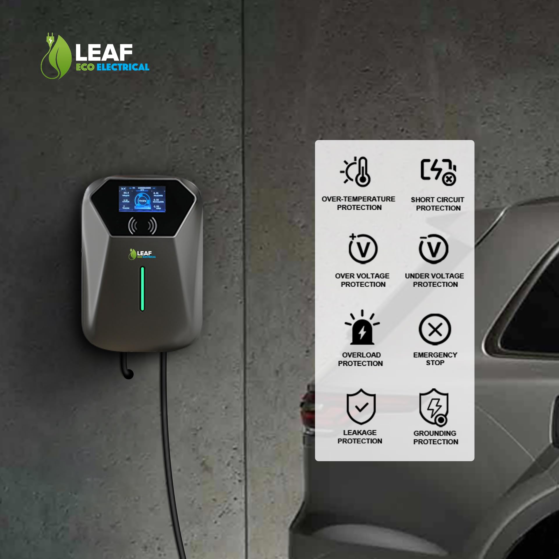 Leaf Eco Electrical includes Pen Fault protection, over-temperature protection, short circuit protection, over-voltage protection, under-voltage protection, and overload protection. That is reassuring for a fixed installation, because a home EV charger should be designed to cope with faults without drama. It is also rated IP55 and designed to handle temperatures from -20 to +50 degrees Celsius, which is useful for UK garages, driveways, and exposed external walls where damp and cold are common.