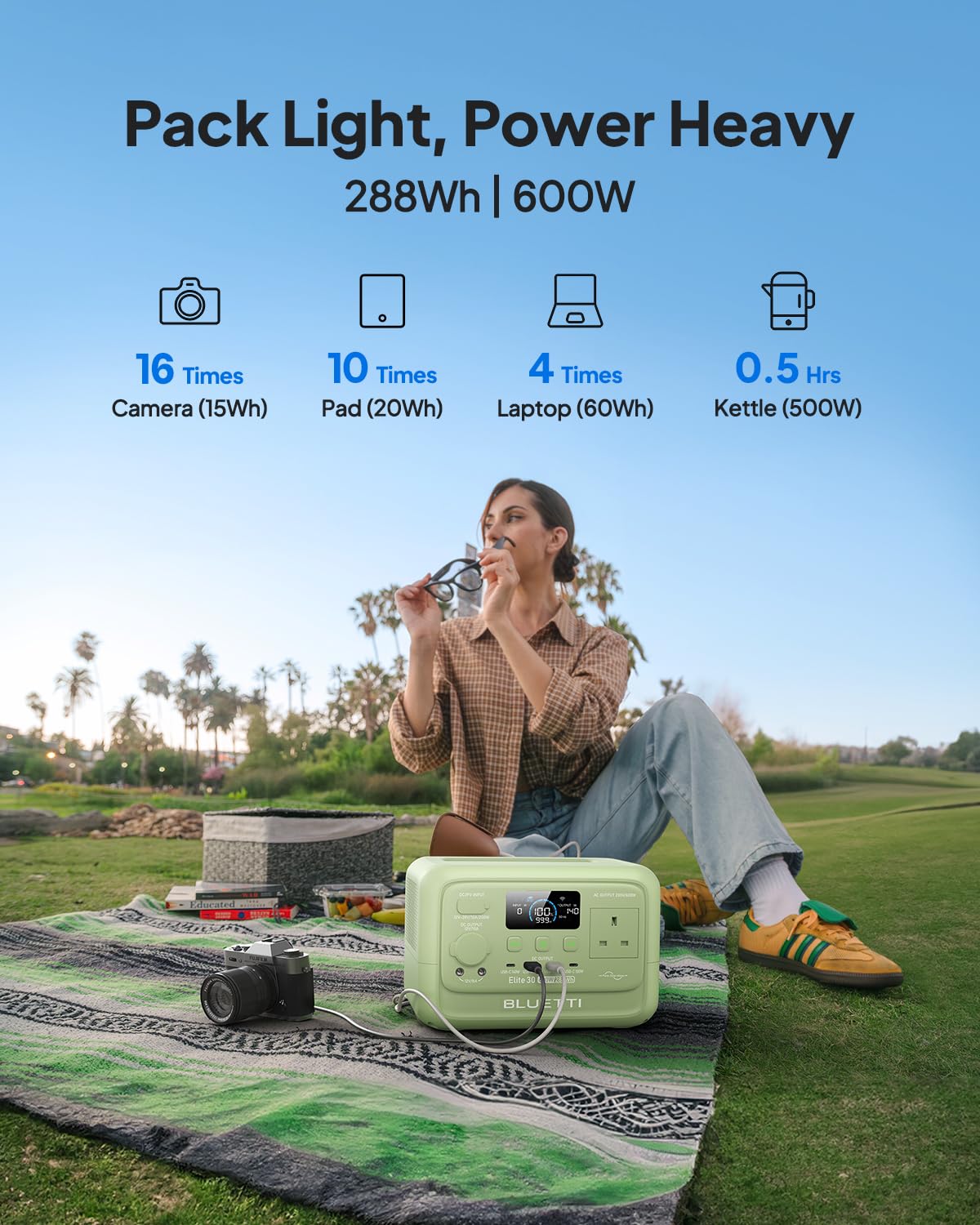 The Elite 30 V2 is aimed at buyers who want a small, portable unit rather than a heavy home-backup box. At 9.4 lbs, it is easy to carry, and BLUETTI’s inclusion of 9 outlets gives it more flexibility than many similarly sized units. The Meadow Green finish and five available variations also suggest BLUETTI is trying to make this a practical everyday power station rather than a niche emergency-only device.