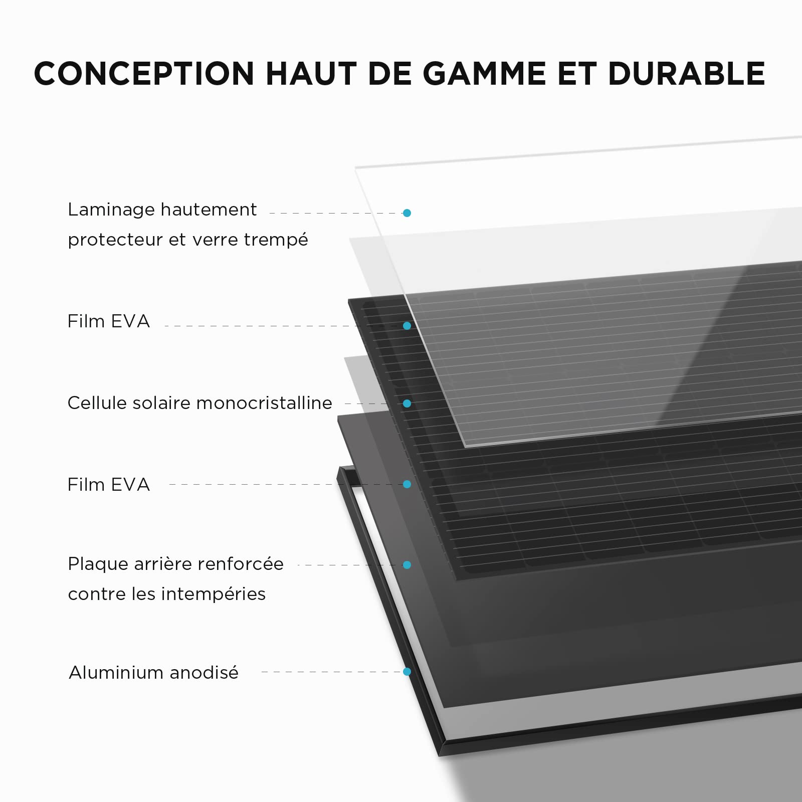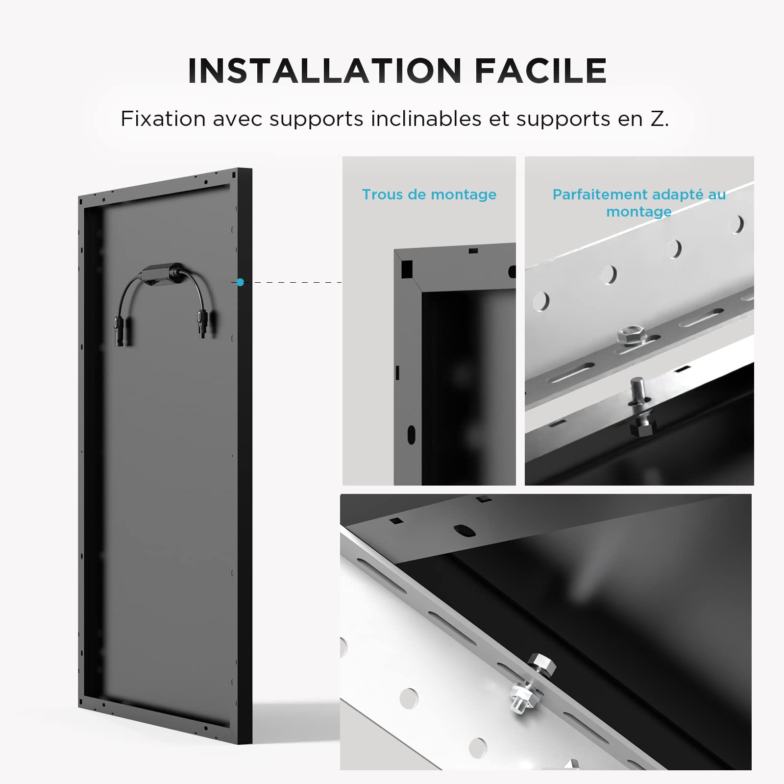 At 98 x 58.7 x 3 cm and 6.21 kg per panel, this is a fairly manageable rigid panel rather than a bulky rooftop slab. The design is aimed at straightforward installation: pre-drilled holes make mounting easier, and the rigid format suits fixed solar panel kits far better than a foldable panel meant for occasional use. For anyone building a more permanent off-grid system, that matters more than flashy portability.