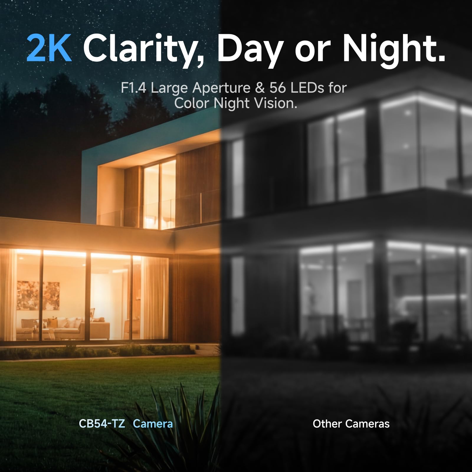 - 2K resolution plus F1.4 aperture should improve detail and low-light capture compared with basic 1080p cameras.