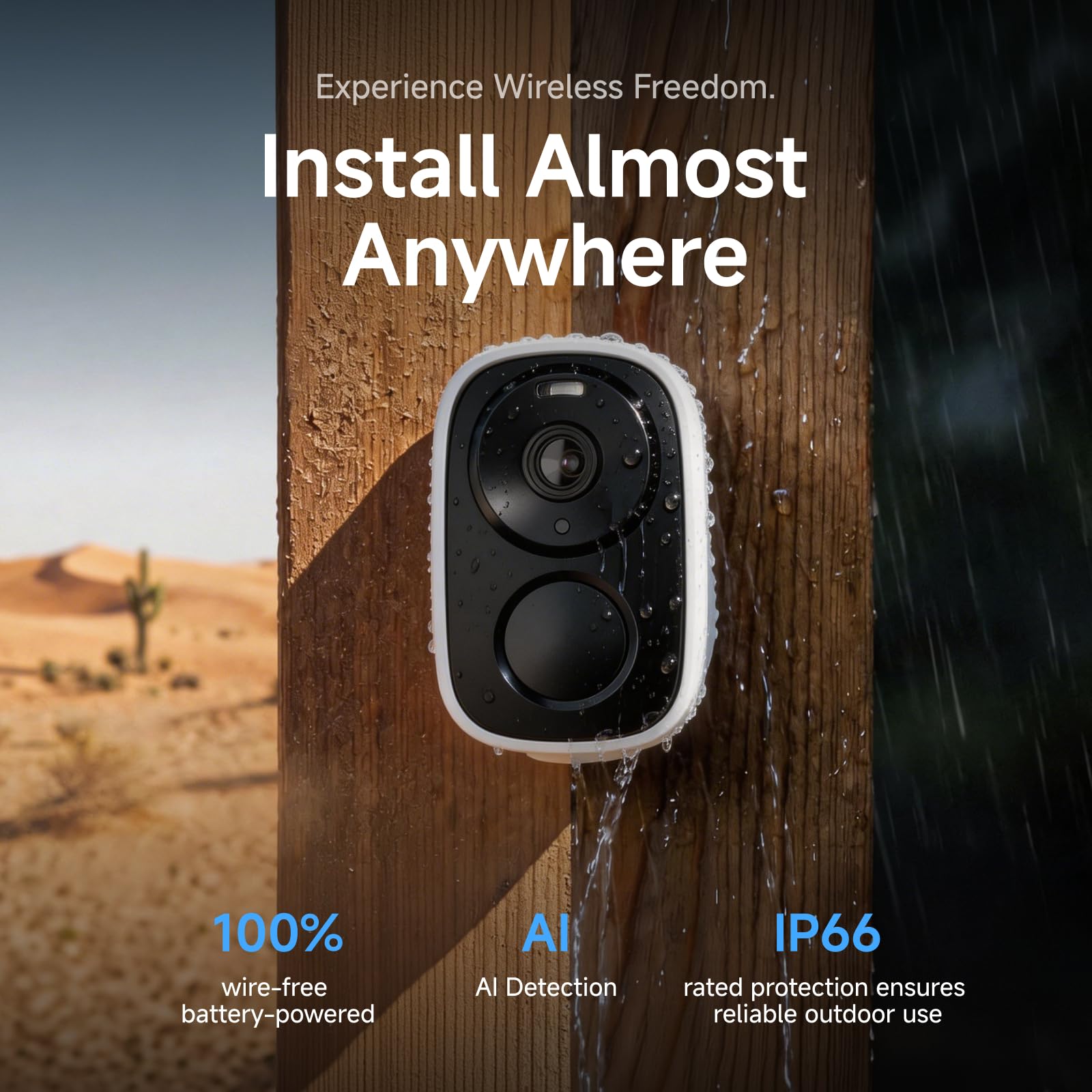 The pitch is clear: a battery-powered solar camera for outdoor home security that aims to cut both installation hassle and ongoing costs. The headline features are practical rather than gimmicky — 2K resolution, WiFi 6 dual-band support, color night vision, a siren, two-way audio, IP66 weather resistance, AI human detection, and free cloud storage. For UK buyers, the promise of year-round solar operation is especially relevant, because winter daylight is limited and many solar cameras struggle when panels are undersized or poorly positioned.