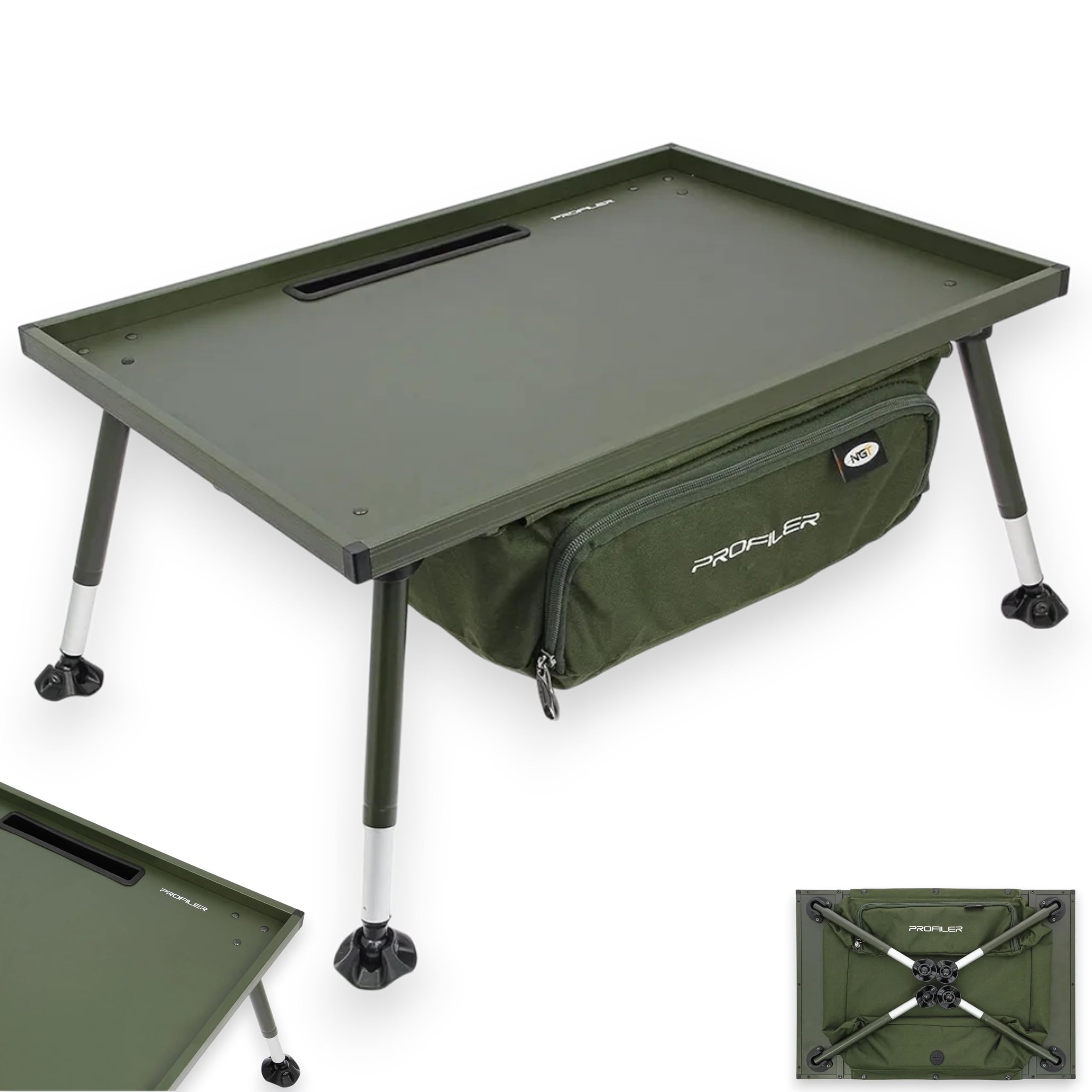 For carp fishing, this sort of table is about organisation and efficiency rather than glamour. Based on the listed design, the NGT Profiler should suit anglers who want a stable, elevated surface for tying rigs, preparing bait, and keeping essentials dry and accessible. The heavy-duty construction and twist-lock legs suggest it is built for repeated setup and pack-down rather than occasional casual use.