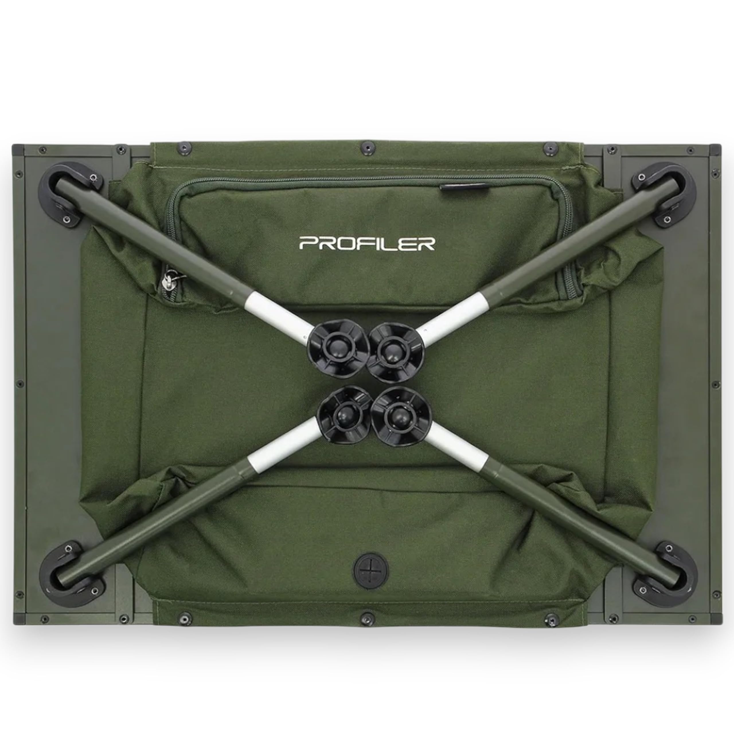 The integrated underside storage bag is another genuinely useful touch. It gives you somewhere to stash smaller items you want close at hand but off the tabletop, and the soft grommet on the back of that bag adds a bit of thoughtfulness to the design. The phone/tablet slot is also handy for anglers who use their device for alarms, weather checks, session notes, or watching a bit of content during a quiet night session. The caveat is clear: the tablet is not included, so this is a convenience feature rather than a bundled extra.