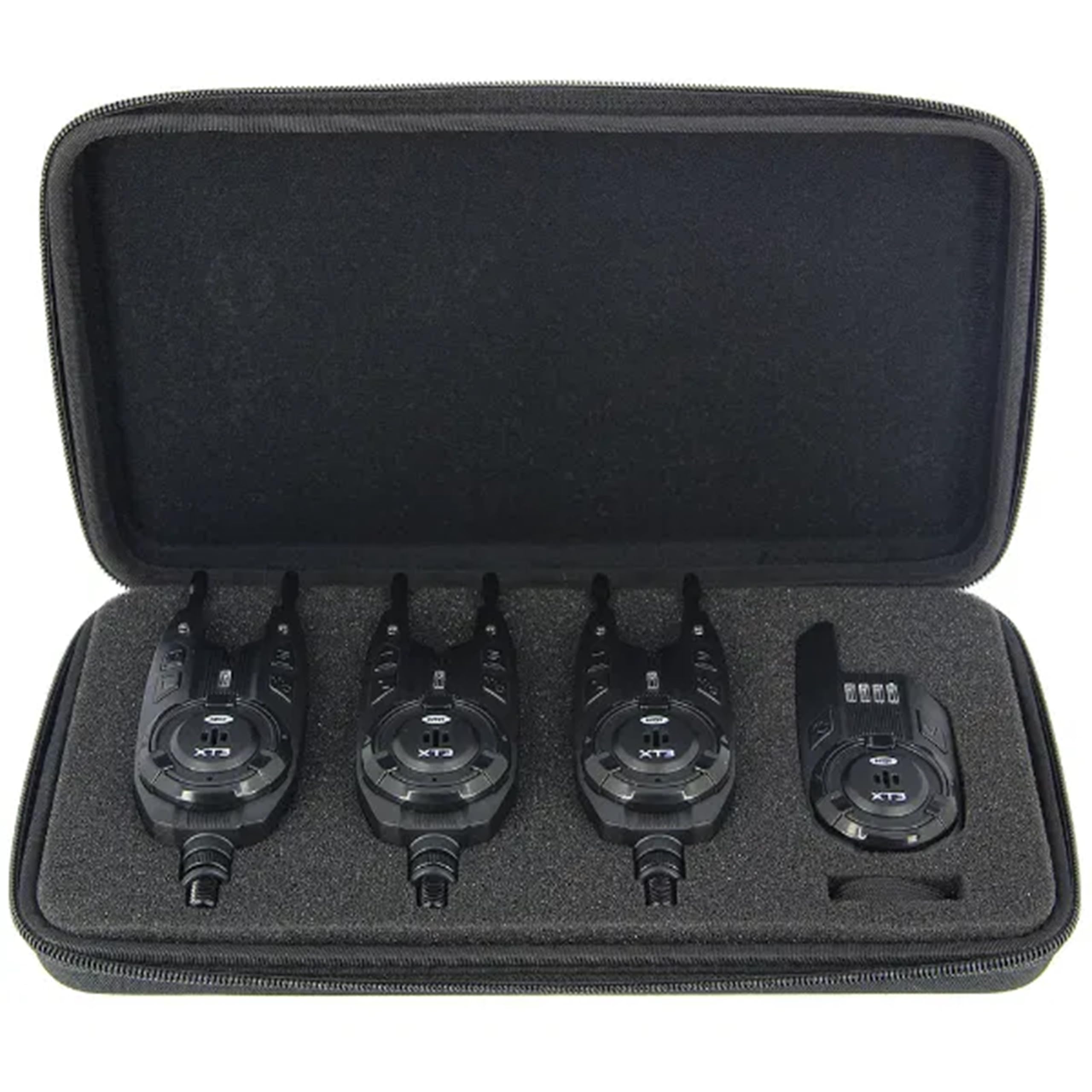For £59.95, the XT3 set gives you three alarms and one receiver, which is the right format for most carp setups on UK waters. The headline features are properly useful rather than gimmicky: blue, red, and green LEDs for rod identification, adjustable sensitivity, volume and tone, dropback detection, and a receiver with vibration mode. That combination makes it feel aimed at anglers fishing multiple rods on busy day-ticket lakes, long-session carp waters, or quieter venues where you want a silent alert option.