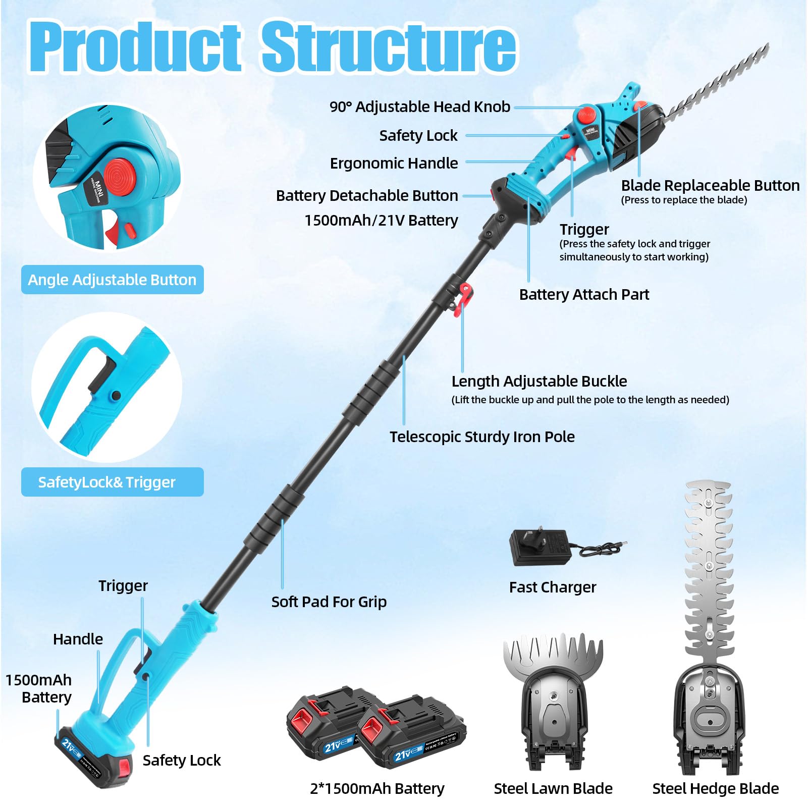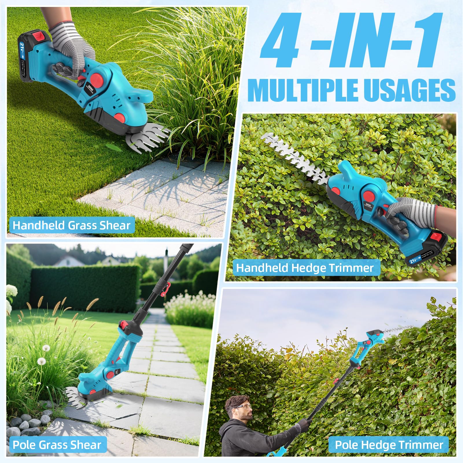 - The telescopic and multi-function design may add complexity compared with a simpler single-purpose hedge trimmer.