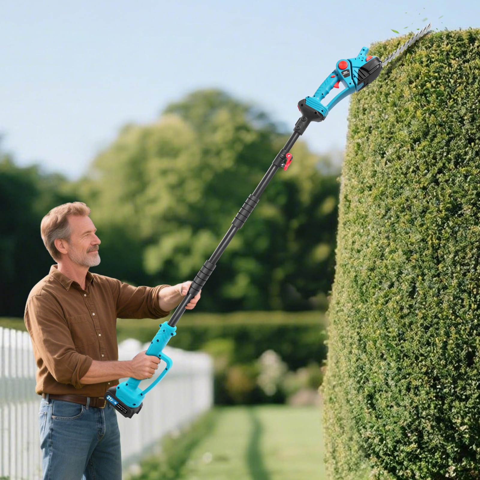 But let’s be clear—the listing hints at a compact, lightweight tool, not something that’ll power through thick, woody growth. If your hedges are dense, tall, or just wild, the 21V platform and 2500 RPM motor might feel a bit lacking compared to beefier mains-powered options. The telescopic pole helps with reach, but it won’t magically turn this into a pro-grade long-reach cutter.