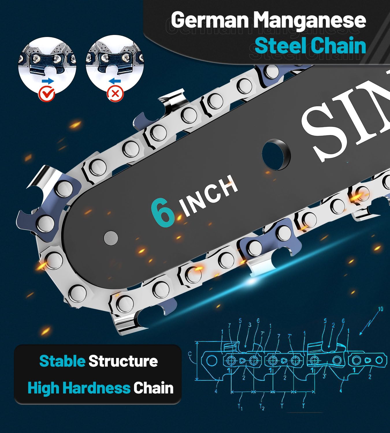 The 880W pure copper motor is strong for a budget 6-inch mini saw and should be enough for pruning branches and small garden cutting jobs. It is not the same class as a full-size chainsaw, so thick hardwood or prolonged cutting will still be outside its comfort zone.