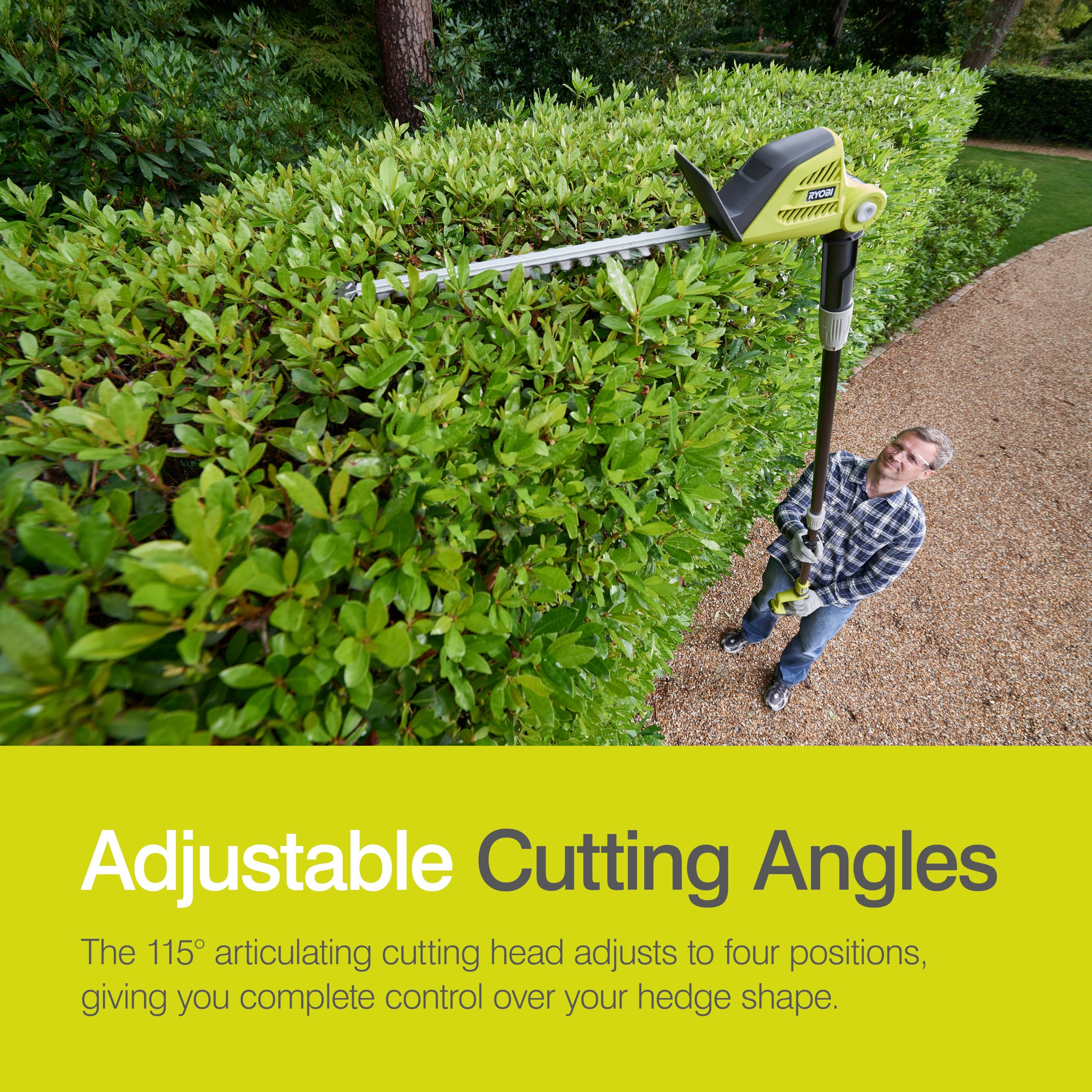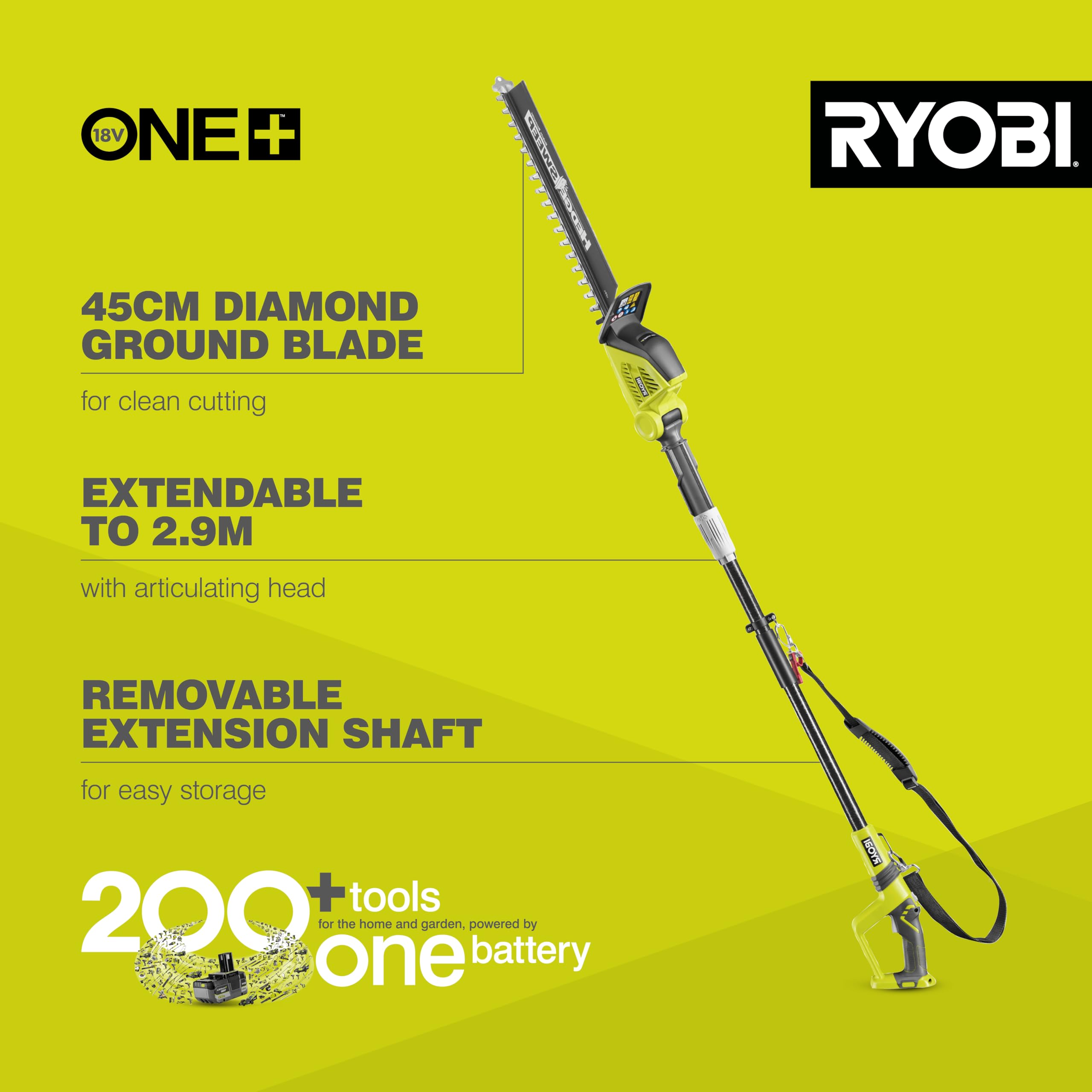 Ryobi’s 45cm pole hedge trimmer is cheap to run and easy to reach
