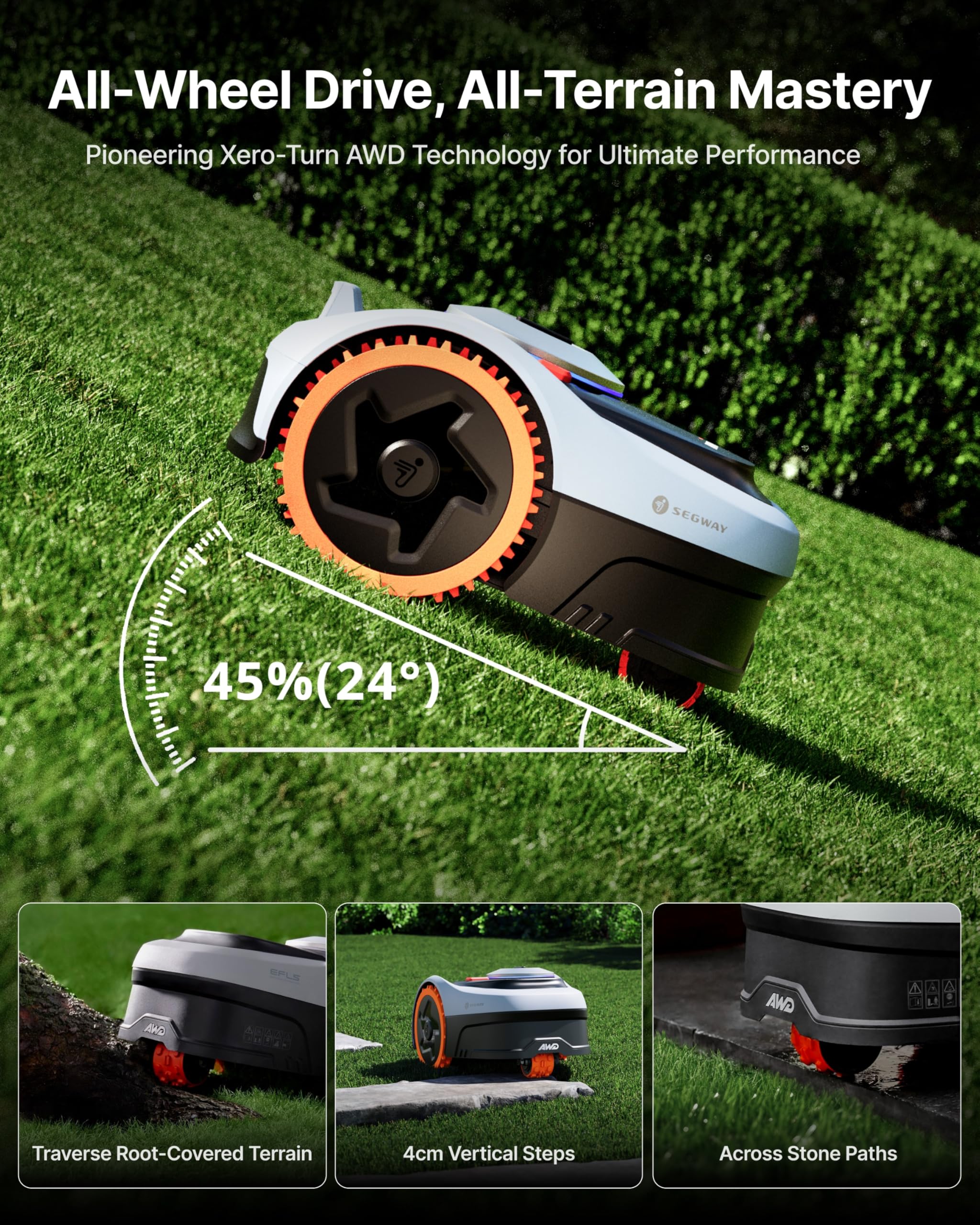 It should help a lot on uneven or sloped lawns, because Segway claims the i205 AWD can handle slopes up to 45% and uses automotive-grade electronic stability control. That makes it better suited to damp, broken or cambered UK lawns than a standard two-wheel-drive robot mower. If your garden is mostly flat, though, you will not get the full benefit of paying for AWD.