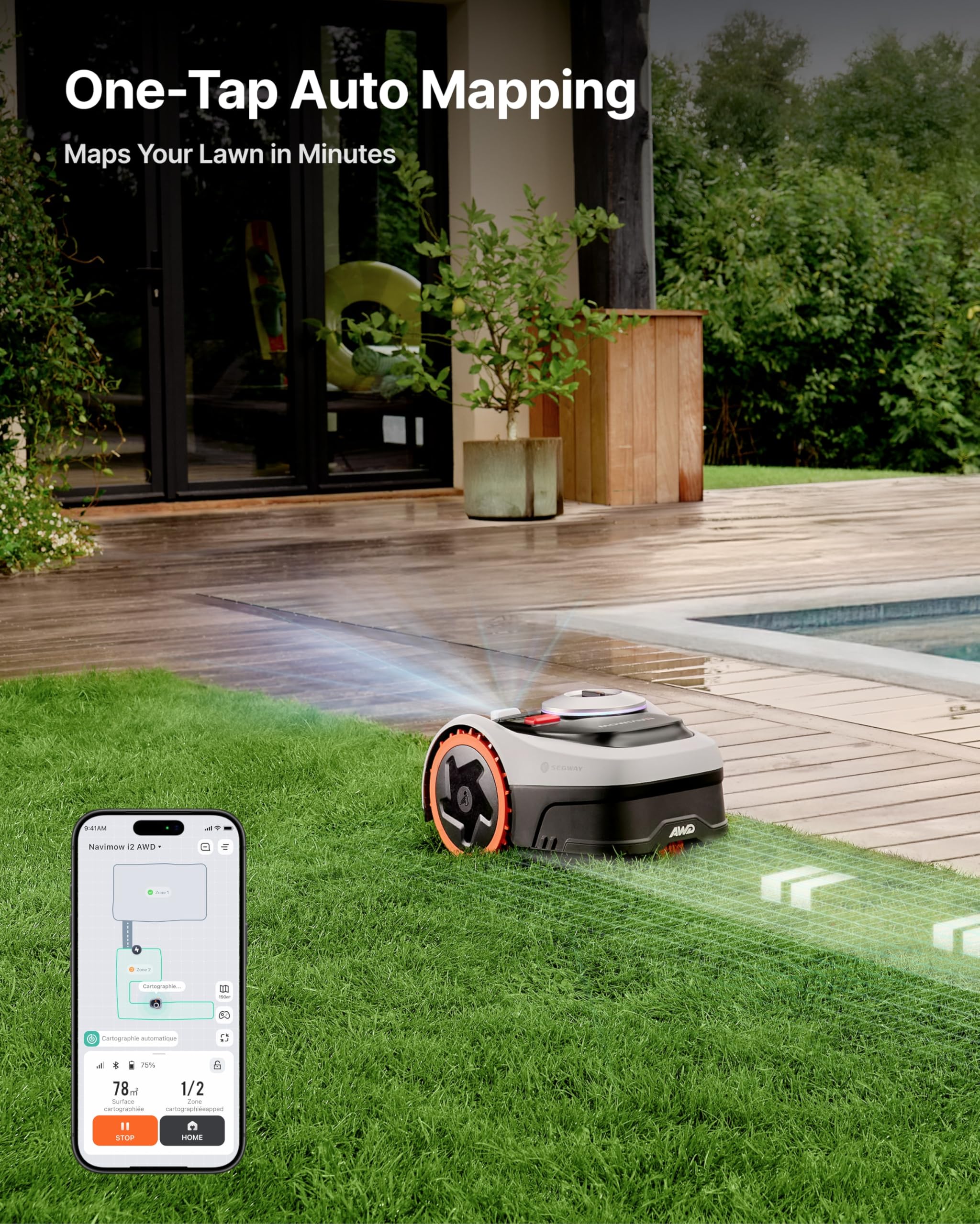 This is one of the strongest reasons to consider it. The Navimow i205 AWD uses EFLS Network RTK with one-tap auto mapping, and the listing says no RTK antenna is required. That removes one of the more fiddly parts of premium robotic mower ownership and should make deployment much easier than older boundary-wire systems. The ability to manage up to 20 mowing zones is another real advantage for gardens split by paths, narrow passages, or separate lawn areas.