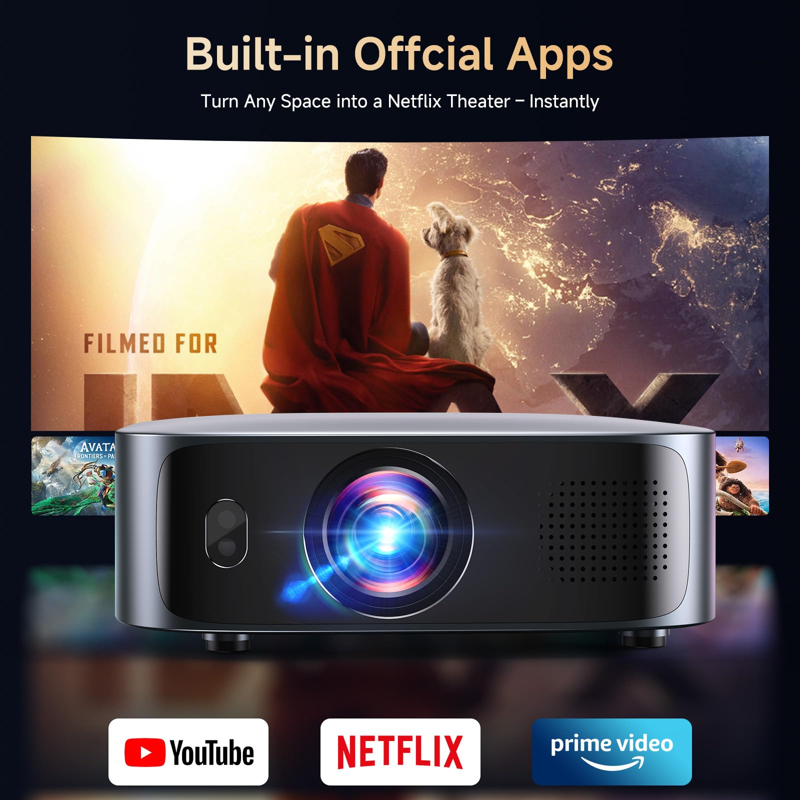 【Netflix Included/Dolby Audio】Smart 4K Projector,1200ANSI FHD 1080P Portable Projector,HDR10 Short Throw Auto Focus/Keystone WiFi6 Bluetooth 50% Zoom Home Cinema Projectors for Bedroom,Outdoor,Gifts