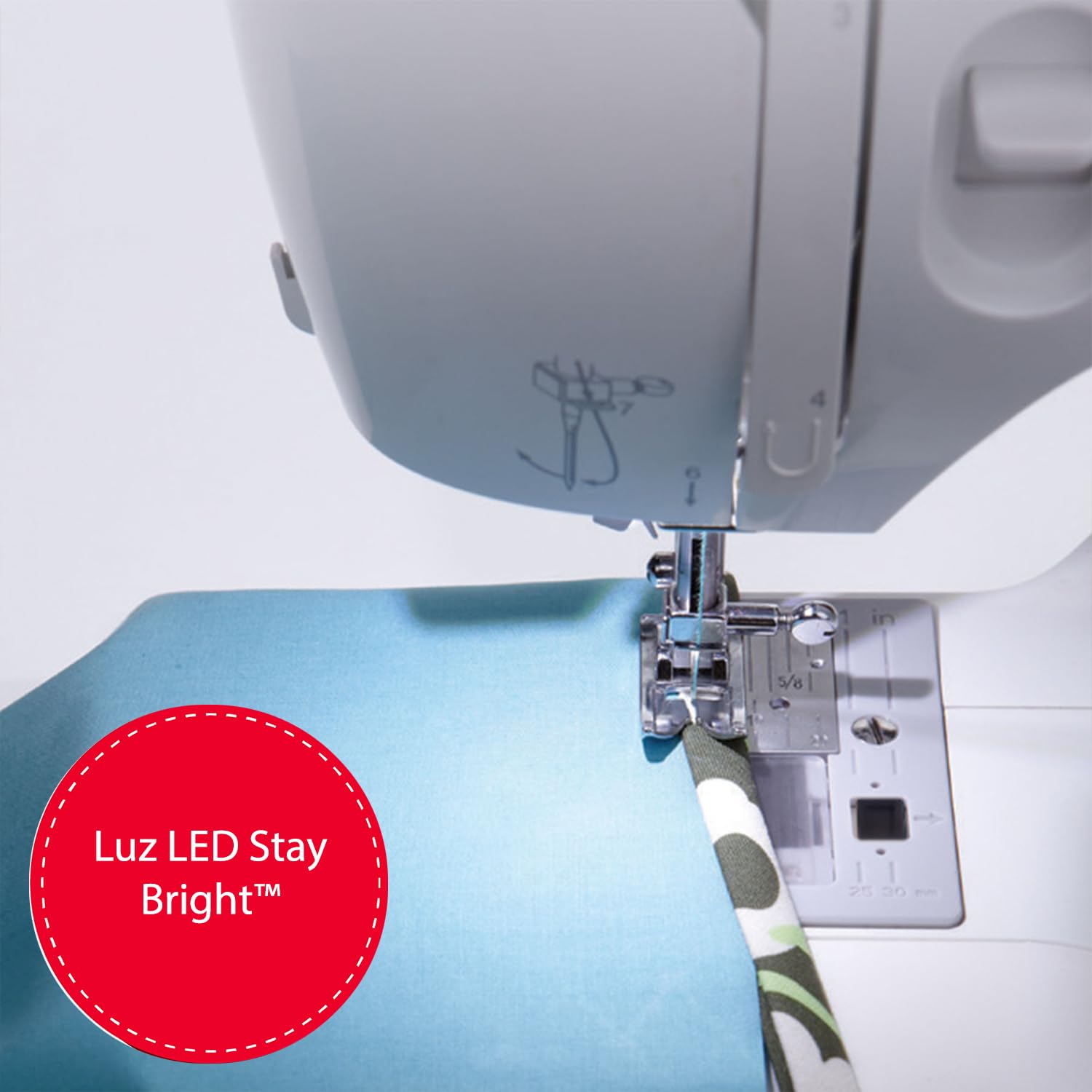 - STAYBRIGHT LED light improves visibility for darker fabrics and detailed stitching.