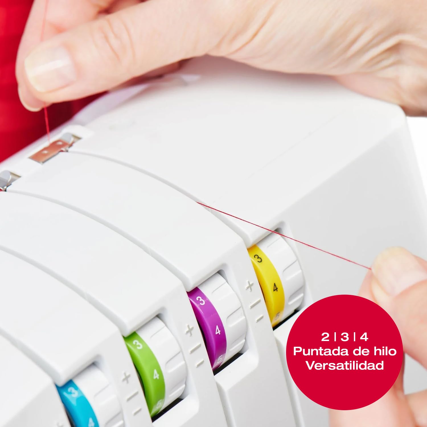 - 2, 3 and 4 thread capability gives 6 stitch types, adding useful flexibility for different fabrics and finishes.