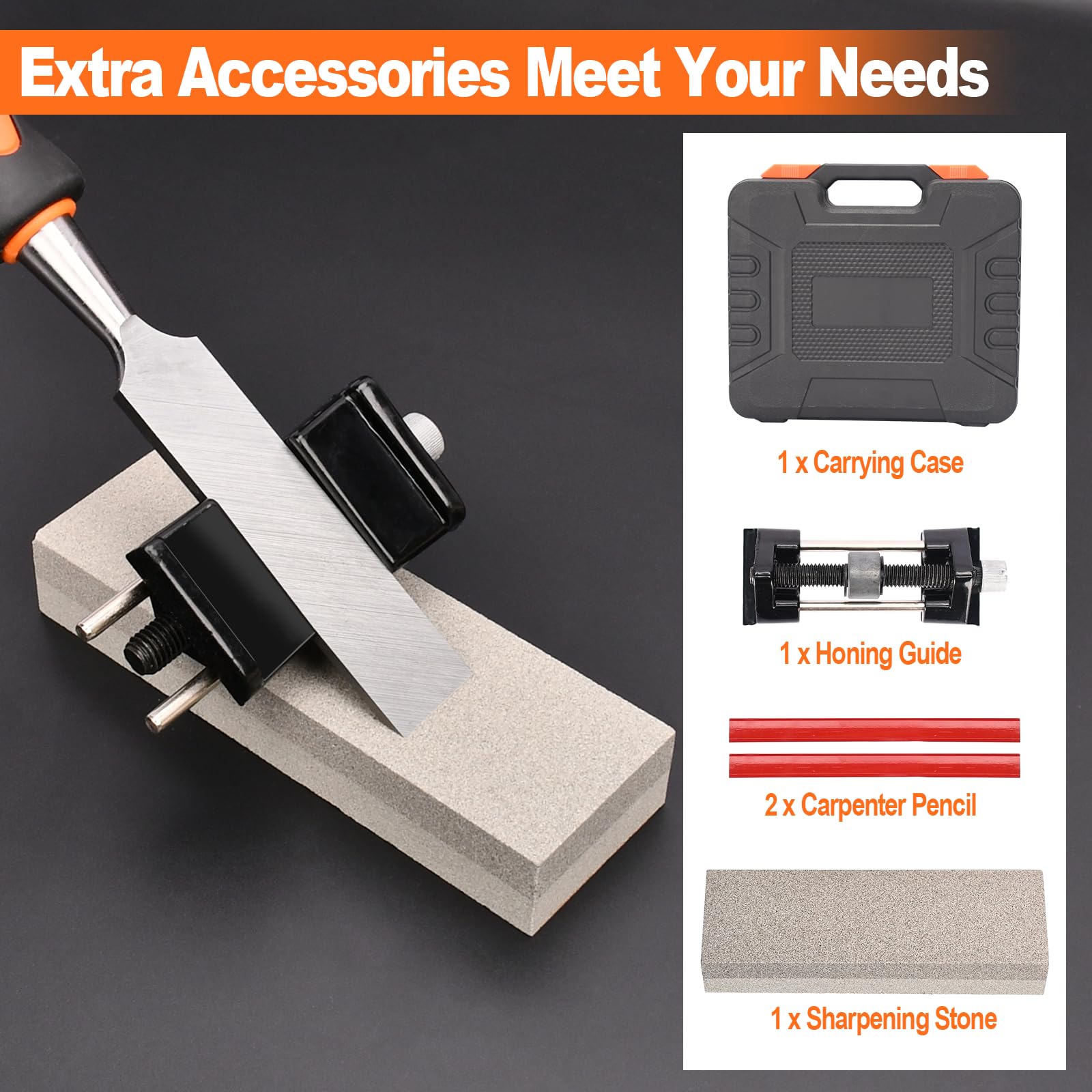 - Includes honing guide and sharpening stone, enhancing tool longevity.